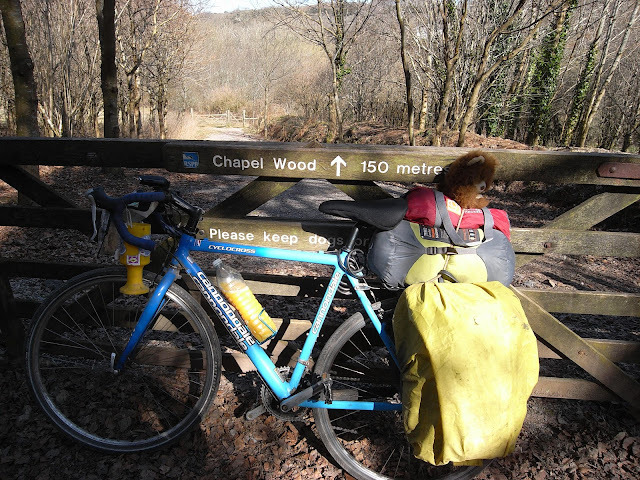 I then cycled to the Chapel Wood RSPB reserve. Indeed the reserve did have a ruined chapel. Goldcrest, titmice, Ravens, Buzzard were all seen and also, an extremely hard to discern hill fort.