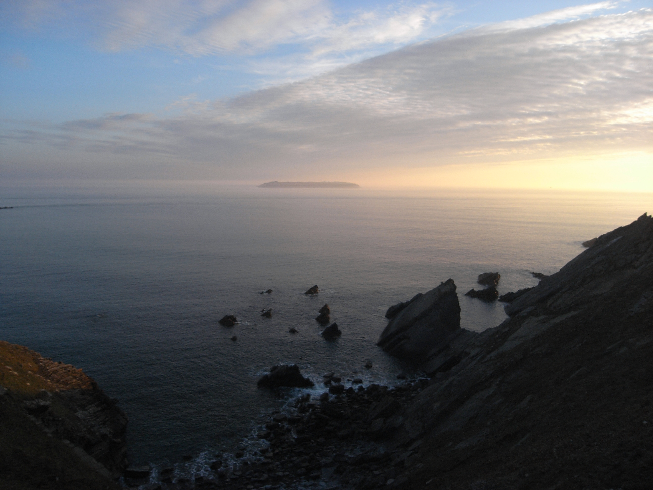 Went off alone for a while to circumnavigate the island anti-clockwise. Beautiful place but I have got to go back when I have booked accommodation for the night there. Amy, one of the summer wardens told how they had counted thousands of Puffins in the morning before the visitors arrived on the boat. Now there were just a few around on the sea, at the bottom of superb steep cliffs. What the island must look like in May is another reason for returning, for that is when the Bluebells are in flower.